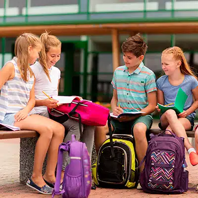 Aulas baseadas no conteúdo de ciências, estudos sociais, matemática e educação física de escolas internacionais.